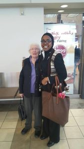 That was how the conversation started. From her parents to marriage and having her two boys who are 63 and 57 years old now, there was no dull minute. She told me about how her parents migrated to north America in the early 1900. She appreciated the fact that everyone in North America is an immigrant; whether you came 100 years ago or a year ago. She lives in a suburb of Edmonton in a neighborhood of retired seniors, and was traveling by herself to visit her grandson in the city I was also visiting. A very smart woman, she is very current with politics and did not hide her feelings about the change of government in the US. Just about 5 minutes into our gisting, we were laughing, giggling and chuckling to the extent that some of our neighbours attention was constantly on us. They looked at us and smiled intermittently. She was very happy throughout the 2 and half hours chat, and wondered how I was so friendly with her. I told her that I love to talk with seniors because I think about how lonely they are especially in this part of the world. She attested to that but however told me that she watches the news, reads and also play games with her neighbors because she lost her husband 10 years ago when she was 76years old. I felt so sorry for her because she now lives alone. It was time to board now, and she was among the first to be called to board. She was not so happy to leave, so we hugged and said goodbye. The flight was about 3 hours, but I didn’t have a clue which section of the air plane she was seating. I strongly felt like getting up to look for her but I was engaged with another senior who sat beside me. This time, was a 67 year old by name Alice. O my God, the gist never ended. She got married at a very early age to her high school lover and has 3 grown up kids. Her first question was my original nationality. She wouldn’t stop praising her neurologist who is a Nigerian and positively impacting humanity, not only practicing medicine, but going extra miles to support his patients during the healing process. She has been through series of brain surgery and since retired 22 years ago as a result of a brain tumor. God bless this country how they cared very much for me. That was her prayer. We landed at about 3pm the city’s local time, and Alice introduced me to her husband who was already waiting for her at the arrival hall. He was a very friendly man and both of them are not stereotypical. We exchanged pleasantries and I went to get my bag. As I was about to leave the arrival hall, I saw Alba waiting to be picked up by His grand son. She was so happy to see me again and I decided to take a picture with her. She brought out her phone and requested to also have a picture taken with her phone camera too. She requested for my business card which I gladly gave to her. She promised to send me a mail and said to me” hope to see you again before I finally go home” I felt so emotional. We had a very warm hug and said good bye!